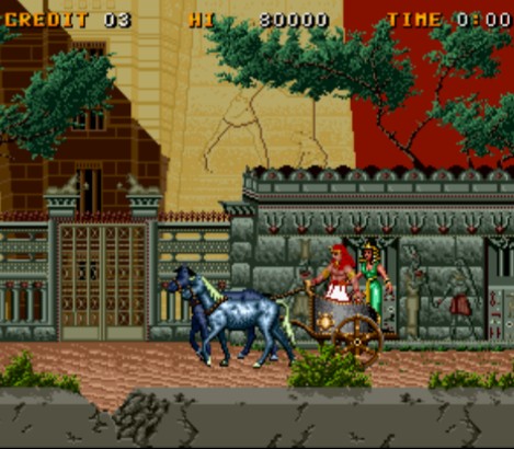 1991年出品的动作游戏。游戏的画面流畅,操作简单,手感也不错,很容易上手。该游戏的背景设在古埃及,主角刚准备出征,结果恶魔就把公主给拐走了(很象《魔界村》啊)。游戏还加入了一些冒险解迷的元素,比如玩家进入了金字塔内部,途中就需要找到一些机关才能开启门或着升降台然后才能继续前进。玩家可使用的武器也比较丰富,从赤手空拳到长剑、魔杖等。游戏的节奏比较满,难度也比较高