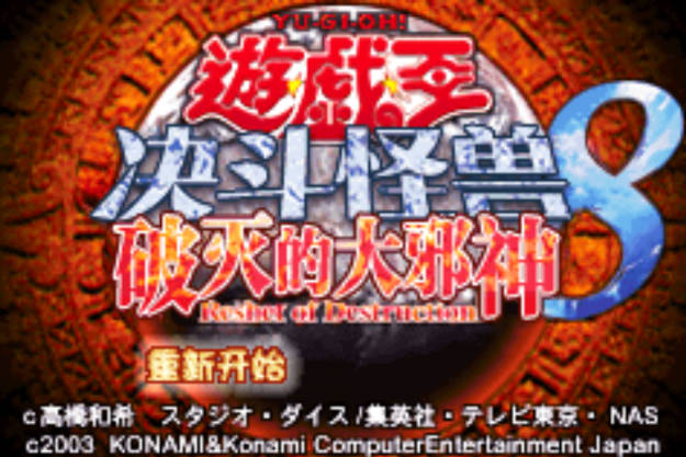 《游戏王决斗怪兽:破灭的邪神》(Yu-Gi-Oh! Reshef of Destruction)是由Konami开发的一款游戏,于2003年在Game Boy Advance平台上发行。这是一款基于《游戏王》动画和卡牌游戏系列的电子游戏。